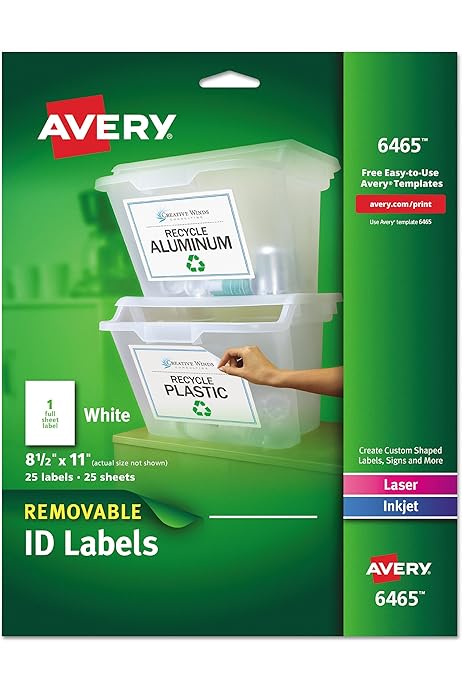 Removable ID Labels , 8-1/2" x 11", Rectangle, White - Avery.ca Avery ® Removable ID Labels for Laser and Inkjet Printers Removable Matte White Paper / White / Removable 6503 Quantity $ 17.99 Regular Price $ 17.99 Add to Cart Add to Favourites Removable Full-Sheet Labels fit right in with your workplace.